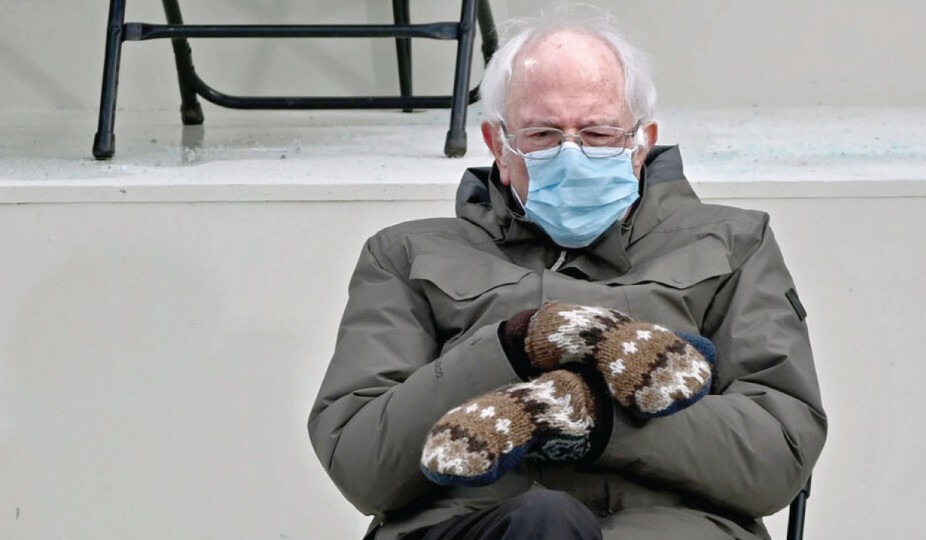 En la fotografía original, el senador demócrata por Vermont, Bernie Sanders, no luce su mejor traje, ni está dando un discurso trascendente ante miles de seguidores, tampoco se trata de una escena comprometedora; sólo está sentado, cruzado de piernas y brazos, abrigado con una chaqueta, unos enormes guantes y cubrebocas, pero esa imagen, tomada hace menos de un mes, se viralizó y ya mueve miles de dólares en el mundo.