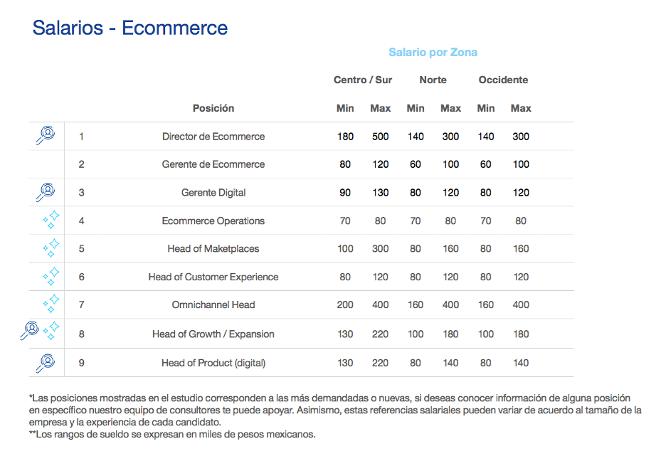 En cuanto a las posiciones más demandadas se encuentran: Head of Product, Growth Marketing Manager, Head of Growth y finalmente Director o Gerente de e-commerce.